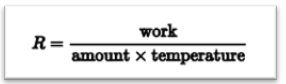 The fact that all gases act alike when heated means this in science: The amount of energy or work going into heating any gas is a number that never changes its value for a unit amount of that gas for each degree of temperature raised. Science calls this constant number, R. It is a fraction that can be pictured like this: