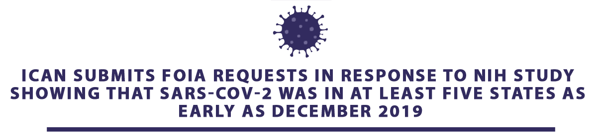 ICAN, through its attorneys, submitted three FOIA requests in response to a published study conducted by NIH showing that SARS-CoV-2 infections were occurring weeks prior to previously recognized cases in at least 5 U.S. states.