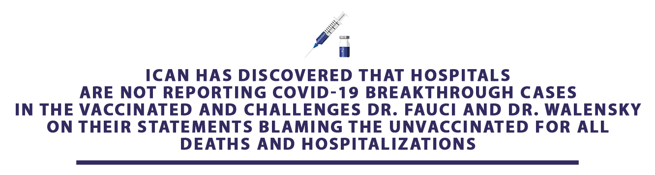 It seems incredibly misleading to tell the country that all hospitalizations and deaths are in the unvaccinated when the CDC itself does not appear to be capturing or analyzing data to support that assertion. ICAN will continue to fight to reveal the hard truths our health authorities are plainly reluctant to admit and will not stand by idle when those authorities make claims without any support.