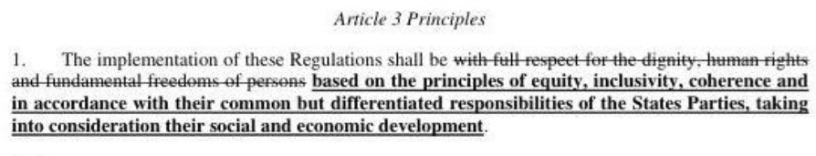 This amendment was originally proposed by India and the reason given was that the substituted principles of equity etc. were “central to the proposed Global Health Architecture.”