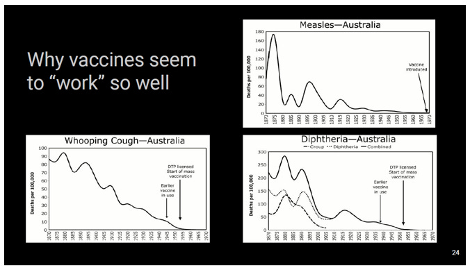 when vaccines were introduced, LONG after the diseases had fallen away.