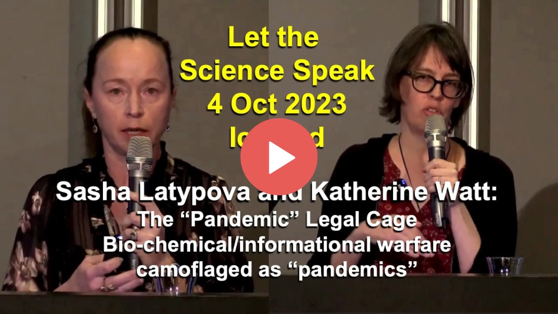 Weaponized "healthcare" for global population control and enslavement; Intentional killing - legal frameworks for State-sponsored biochemical warfare.Latypova and Watt Iceland presentations, excerpted by Dave Ratcliffe of Ratical.org, uploaded to Odyssey, Substack and Rumble.