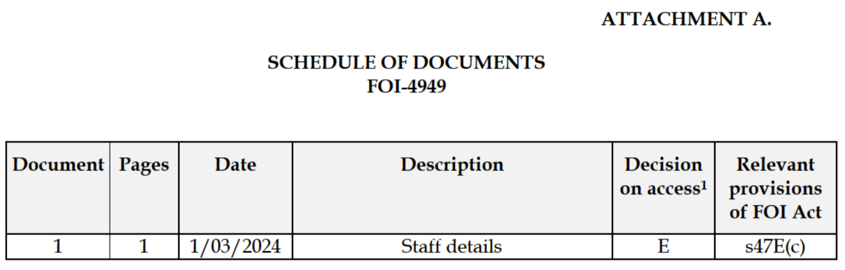 On 1 March 2024, Sean Lane, an Assistant Secretary at the International Strategies Branch of the Australian government’s Department of Health and Aged Care DENIED the Freedom of Information request and, amongst other reasons, stated the following: