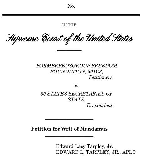 Over the past two decades you may have noticed that court cases are being dismissed more frequently due to a lack of standing. This is the first in a series of articles elucidating how standing and other Dismissal Doctrines have been used to deny The People our most foundational right to petition the Government for a redress of grievances, id est, access the courts for dispute resolution. Given the imminence of an historic election, a recent petition to the Supreme Court is explored here in the context of standing. A Petition for Writ of Mandamus regarding state election processes was filed on October 16, 2024 in the Supreme Court of the United States. The Petitioners, FormerFedsGroup Freedom Foundation (FFF), served the Respondents, “50 States Secretaries of State” with the petition. Expedited emergency review was requested.¹ Replying via text message to an inquiry regarding status, Bradford Geyer, Founder of FFF, responded, “all Secretaries of State (including DC — that included 4 Lt. Governors acting as SoS’s)” were served “by email on Thursday October 17, 2024.” Geyer added, “On Saturday we sent by certified return receipt requested … that they should receive today [10/22/2024] at the latest.” A Writ of Mandamus is “an order from a court to an inferior government official ordering the government official to properly fulfill their official duties or correct an abuse of discretion.”² The All Writs Act (28 U.S. Code § 1651) by Act of Congress establishes the authority for the Supreme Court and all courts to issue writs of mandamus. FFF’s petition, summarized, is a request for the Supreme Court to order all 50 states to use “absolute voter identification, paper ballots and hand counting for the 2024 general elections …” FFF asserts that serious election issues currently involve “vulnerabilities in voter registration, voter verification, vote tabulation, vote reporting, mass media electioneering, and social media censorship.” Particularized evidence in the petition includes that voter rolls are compromised, illegal aliens are registered to vote and have voted, voting machine software and hardware cannot be made secure from hacking, and election workers have been threatened and intimidated to certify the results regardless of witnessing irregularities. The Petitioners argue that the current system is so open to corruption that few in society will trust the results of the election unless the requested relief is granted; and such distrust may spill over into violence. StandingThe greatest challenge the Petitioners face is that which is also central to the ongoing erosion of civil society in America. Standing Doctrine will likely be one of the Dismissal Doctrines used by some of the Secretaries of State in their Motion to Dismiss FFF’s petition; and they will likely reference the case Ashcroft v Iqbal (2009), which has been cited 271,940 times since 2009, a rate 30 times greater than prior popularly cited cases involving other hurdles to achieve standing.³ Standing Doctrine has become the lynchpin issue in nearly all civil cases in the United States. Former President Donald Trump often explains that approximately sixty cases filed regarding the 2020 general election were dismissed due to a purported lack of standing. None of the cases were heard in substantive arguments involving evidence. Id est, none reached the Discovery phase of litigation. Dismissals due to lack of standing allow issues to fester in society rather than be decided in the courts. Incivility grows and justice is delayed or abandoned because disputes are left unresolved. The courts’ primary mission is dispute resolution, especially in “controversies,” as expressed in Article III § 2 of the U.S. Constitution. However, the courts learned to avoid the responsibility of decision making by habitually engaging in the allowance of Dismissal Doctrines such as Qualified Immunity, Sovereign Immunity, Mootness, Ripeness, Laches, and Standing. In the past 15 years, litigators in defense posture have opportunistically overused and abused Standing Doctrine to an extent 20 to 30 times more frequently than the personal jurisdiction hurdle, which was one of the major civil procedure hurdles to get past in the prior two centuries. The abuse of Standing Doctrine violates the most foundational right of American citizens, the right “to petition the Government for a redress of grievances” in the context of a case or controversy.⁴ The Supreme Court’s laissez-faire posture toward controversial issues, one being the attempt of FFF to the ensure security of the 2024 election processes, may result in an irreparable schism in the United States. The relief sought in FFF’s petition sounds extreme only to those who have been lulled into acceptance of the now extreme malfeasance ongoing in the U.S. state election systems. The relief requested is far from extreme and is the baseline that worked efficiently in the United States for two centuries before electronics entered election tabulation. Returning to the use of paper ballots and hand counting, like France and Canada, is a return to foundational security and election integrity.⁵⁶ Network and computer hacking occurs in many industries that deploy much greater network security than do voting machines. Any statement made by politicians or bureaucrats to the effect of electronic voting systems being secure from hacking is either folly or prevarication. Anticipatory assumptions can be made regarding the Supreme Court’s disposition regarding FFF’s petition for writ. A Respondent’s dismissal motion for lack of standing will likely include some theories of ripeness, lack of injury-in-fact, or especially the inability of the court to redress the grievance. The Petitioners are seeking that “no ‘ineligible’ or ‘unverifiable’ voter will be afforded …” the right to vote. One might anticipate that the Court could agree with the Respon