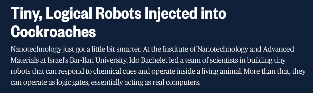 Tiny, Logical Robots Injected into Cockroaches