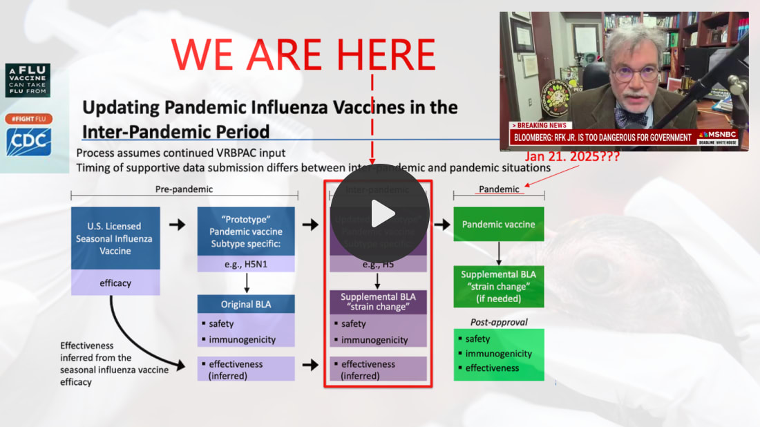 Dr. Hotez Exposes HHS and WHO Plan to Mass Infect Americans with H5N1 Flu Virus by January 21stIs it just me, or does Dr. Hotez’s announcement that H5N1 "will come crashing down on Trump on January 21, 2025” comes off as a serial killer broadcasting the date of his next victim’s murder?December 9, 2024: Last week on MSNBC, Dr. Peter Hotez announced that multiple pandemic diseases will rampantly be infecting human and animal populations by January 21, 2025. Hotez specifically noted that the H5N1 virus is “rapidly spreading through wild chickens, chickens, dairy cows, and milk with sporadic human outbreaks.” Is it just me, or does Dr. Hotez’s announcement that H5N1 and other pandemic diseases will “all come crashing down on the Trump administration on January 21, 2025” comes off as a serial killer broadcasting the date of his next victim’s murder? I Took Notes from the WHO and HHS Meetings on the H5N1 PlandemicOver the past two months, I’ve been on InfoWars with Maria Zeee, USAWatchdog with Greg Hunter, The Absolute Truth with Emerald, WorldViewTube with Brannon Howse, Laura-Lynn Thompson, Kate Dalley, Jim Ferguson, and The Onward Podcast with Brett Hawes, to discuss the WHO’s and HHS planned H5N1 pandemic for Trump and RFK Jr to inherit. The H5N1 “plandemic” includes the mass surveillance and culling of livestock by global and US government agencies, mass recalls of eggs, chicken, beef, milk, and other foods, as well as mass testing and vaccinations of animals and human beings alike. This title side from the CDC’s October 10, 2024, presentation kind spells it out that the WHO and HHS are going to blame the H5N1 plandemic on livestock and then mass vaccinate global populations. The NIH Has Invested Over $1.5 Billion in Developing H5N1 VaccinesIt’s important to note that the NIH has invested over $1.5 billion in developing H5N1 vaccines since 2006 and is financially invested in ensuring the H5N1 vaccines gain global market access. Reference: https://reporter.nih.gov/search/qJtxUFYq6kOKyVp66ZxrqA/projects Was the “Deep State” Forced to Broadcast Their Plans and Get Ahead of this Narrative?During multiple interviews, I repeatedly affirmed that the H5N1 pandemic was guaranteed to happen and would likely hit in or prior to the end of January 2025 so that Trump and RFK Jr. would inherit a both a public health emergency, as well as mass food shortages. Mike Bloomberg and Dr. Peter Hotez confirmed that H5N1 and other pandemic diseases will be“crashing down on the Trump administration.” Were they forced to expose this obvious planned biowarfare attack in an attempt to take control of the narrative? Unfortunately for “the deep state,” HHS documents show that their biowarfare plan is clear and just like with COVID-19, the H5N1 plandemic is about unleashing disease-causing life-threatening bioweapons on Americans and the global population under the guise of “safe and effective vaccines” COMBINED WITH an attack on the food supply. This is BiowarfareAfter completing a deep-dive on HHS, FDA, CDC, ASPR, BARDA, USDA and WHO documents, combined with viewing hours of US federal healthcare agency meetings as well as the recent ‘confessions’ from Mike Bloomberg and Dr. Hotez that the H5N1 pandemic is going to go into full-throttle mode in January 2025, it is painstakingly obvious to me that H5N1 and other ‘2025 pandemic pathogens’ are globally coordinated biowarfare attacks on human beings and the food supply. America Won’t Survive if God’s People Remain SilentKeep in mind that in the summer of 2021 I was interviewed by Kate Dalley on InfoWars (and many other alternative media outlets) warning the world that the COVID-19 injections were neither biologics nor vaccines, but advanced technology bioweapons. Don’t Downplay Biowarfare Attacks. Expose Them.Despite presenting US government documents, my warnings were discredited, and the risks of the COVID-19 shots were downplayed with the majority of the alternative media picking up the narrative of, “Stop the Mandates, Make the Vaccines a Choice.” In my expert opinion, this was the biggest misstep of the medical freedom movement. The shots are bioweapons and were never safe for any human being or mammal (for that matter). Even though the mRNA injections can only poison, harm and kill, many key influencers were ‘warned’ to ‘not go there’ in 2021, 2022, and 2023 (including myself. I didn’t listen). Be Brave and Very Courageous!As Americans, we can’t afford to make similar missteps with the H5N1 plandemic. Please take courage and share this Kingston Report far and wide. Boldly shine light on these dark biowarfare plans against global citizens, our food supply, and the upcoming Trump administration. Joshua 1:7-9“Only be strong and very courageous, that you may observe to do according to all the law which Moses My servant commanded you; do not turn from it to the right hand or to the left, that you may prosper wherever you go. This Book of the Law shall not depart from your mouth, but you shall meditate on it day and night, that you may do according to all that is written in it. For then you will make your way prosperous, and then you will have good success. Have I not commanded you? Be strong and very courageous! Do not be afraid, nor be discouraged, for the Lord your God is with you wherever you go.” The Kingston Report. TRUTH WINS.If You’d Like to Further Support My WorkThe Kingston Report is reader-supported. Consider becoming a paid subscriber to support me and my work. Contact: I can be contacted via email at patriots@mifight.com You're currently a free subscriber to The Kingston Report. For the full experience, upgrade your subscription. |
