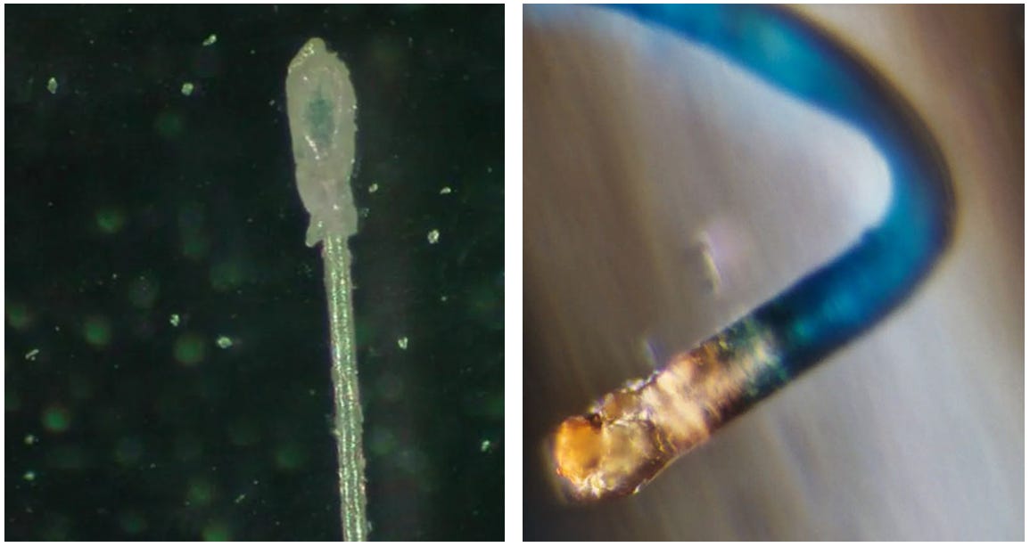 Image: Nanowire network with micellar construction sites in COVID19 unvaccinated blood. Magnification 100x. AM Medical This week I saw this nanowire network in an asymptomatic middle aged individual and a teenager. While I had seen the micellar construction sites, the elaborate nanowire network connecting them was new. I asked Dr. Hildegarde Staninger if she had seen this before and she sent me images and research papers that she had published on the topic of “Sencils”. The difference between our findings is that I am capturing it as it is forming in the blood, while she analyzed them as part of mesogens or filaments exiting the skin. Her research was done in 2011, 13 years before my findings, but they match completely, indicating the widespread deployment of advanced nanomaterials in humanity. In the two images below you can see more of the network. Remember that each of the micelles is a liquid computer as I explained in this article: Microbubbles Are Microrobots That Build Microchips - Correlation with COVID19 Microscopy Findings Image: Nanowire network with micellar construction sites in COVID19 unvaccinated blood. Magnification 100x. AM Medical Image: Nanowire network with micellar construction sites in COVID19 unvaccinated blood. Roulaux formation seen and microchip development in inverse triangular micellar robot in center of image. Magnification 200x. AM Medical You can see the amount of further micellar micro and nanorobots in the larger structure. Image: Micellar construction site in COVID19 unvaccinated blood. Magnification 400x. AM Medical You can see the energy harvesting that creates the rubbery clots. Micelles are connected by nanowires. I had posted very detailed microscopy of the rubbery clot formation in my analysis of a rubbery clot that developed in COVID19 unvaccinated blood here: Image: Micellar construction site in COVID19 unvaccinated blood creating rubbery clots via energy harvesting from red blood cells. Magnification 400x. AM Medical Now lets compare this with my microscopy of the COVID19 Pfizer BioNTech vials that I had left on a slide. Blow you see an image of the nanowires connecting microchips that had developed leaving the solution for 4 weeks at room temperature on a slide. You can find more of my microscopy of COVID19 vials here: Here you can see the connection between Mesogen microchips and nano/microwires in COVID19 unvaccinated blood: Image: COVID19 Pfizer BioNTech vials Darkfield Microscopy shows microchips connected via nanowires. Background shows extensive nano and microrobots. Magnification 200x. AM Medical This is a 4000x magnification of a Sencil that developed in the COVID19 Pfizer BioNTech sample: Image: COVID19 Pfizer BioNTech vials Darkfield Microscopy shows Sencil nanowires. Magnification 4000x. AM Medical These are the images from Dr. Hildegarde Staninger of an advanced nanomaterial mesogen that came out of the nasal bulb of a Morgellon’s/ Targeted Individual in 2011 - in the left image you can see Sencils coming out of the specimen with nanowires: Image: Sencil and nanowires left. Advanced nanomaterials nasal bulb full specimen. Dr Staninger 2011. In the next image you can see a Sencil on the left. In its mature phase it develops into a Goldenhead on the right. This is a fully developed infrared camera nanotechnological device for biosurveillance that Dr. Staninger analyzed chemically - it is made of high density polyethylene. Image: Sencil and nanowires left. Advanced nanomaterials nasal bulb full specimen. Goldenhead on the right. Dr Staninger 2011. For further information on Dr. Staningers findings please see this article: Dr Staninger noted that the micellar structure pointed to with the red arrow is a Sencil in immature form. The green arrow points to a bowtie waveguide antenna. Image: Nanowire network with micellar construction sites in COVID19 unvaccinated blood. Sencil and bowtie nano/micro antenna. Magnification 100x. AM Medical Here you can see a slide from Dr. Staningers presentation. The blue fibers were also found in the same COVID19 unvaccinated patient with the nanowire network. Image: Blue fibers with construction site and significant rouleaux formation in COVID19 unvaccinated blood. Magnification 100x. AM Medical Image: Dr Staningers images of advanced nanomaterials. The Sencils were first descriped by Wang in 2000 in Advanced Materials: Silica Nanotubes and Nanofiber Arrays I would like to remind people that nanowire arrays are used to create neural networks mimicking the brain, in other words, a parallel processing platform rewiring the human with AI nanotechnology, hence changing the human being from the inside WITHOUT THEIR CONSENT OR KNOWLEDGE. This is now happening in the COVID19 unvaccinated via shedding and environmental exposure. Emergent dynamics of neuromorphic nanowire networks