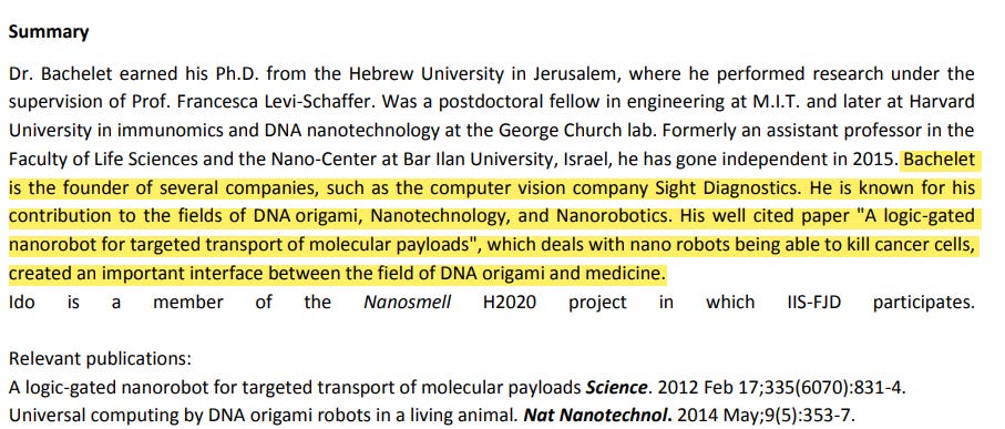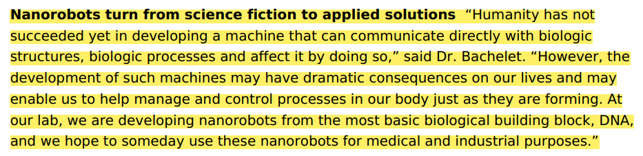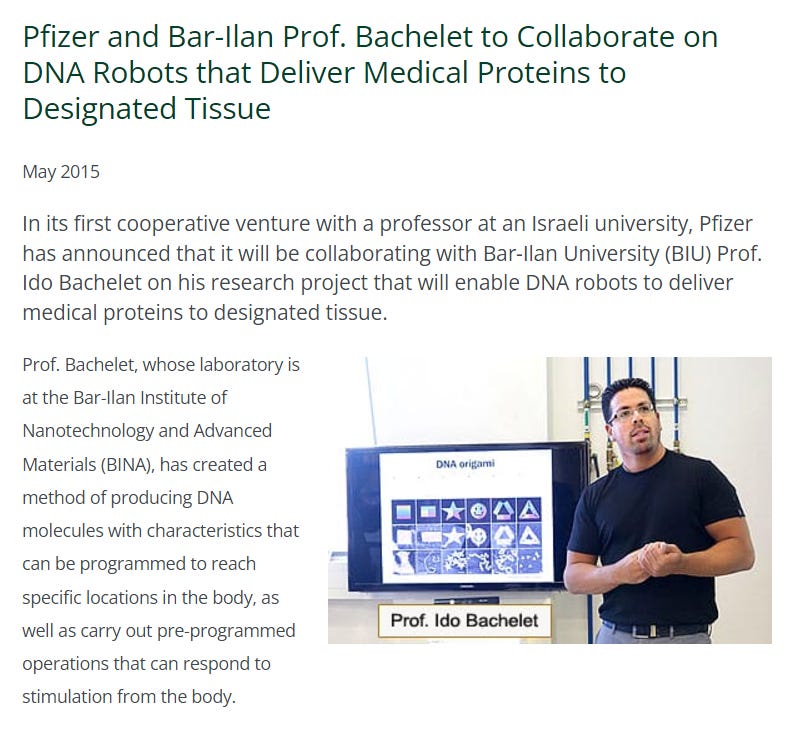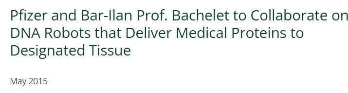 Now, Ido Bachelet appears to have left Pfizer and is working on more advanced nanorobots based upon DNA and RNA.