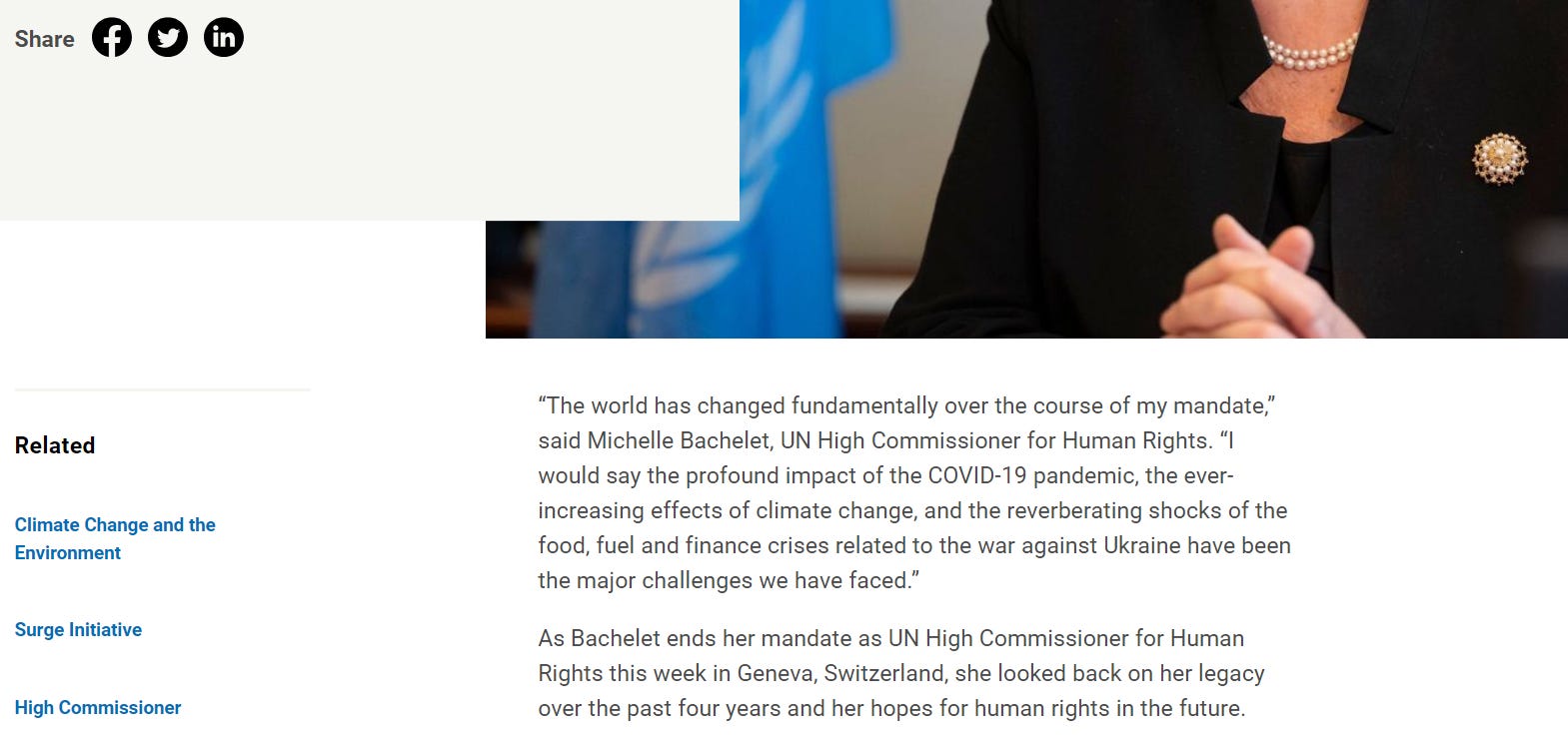 COVID-19 pandemic: The pandemic was a game-changer in terms of how States approach economic and social rights as well as protect those most vulnerable from disease. For the UN Human Rights, the pandemic meant reinvigorating our work relating to social protection, as well as adjusting to new ways of (virtual) work and expanding the monitoring of human rights, Bachelet said.