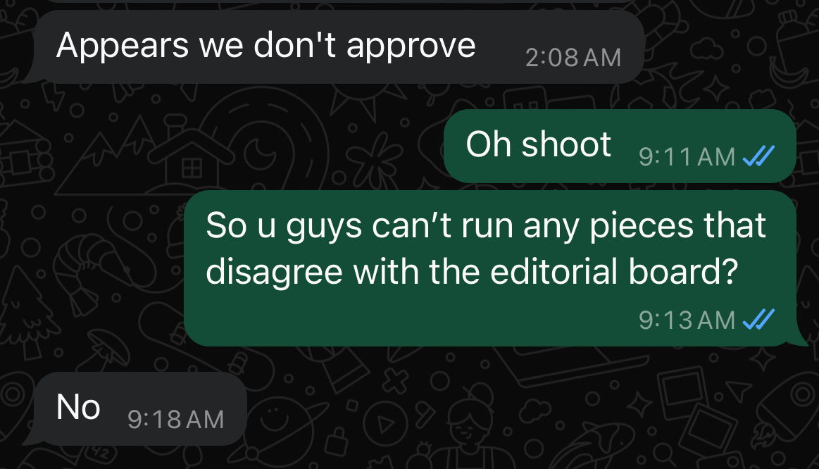 A sobering reminder in case you’ve lost grip of reality yet: this is a prominent American publication that has broken some of the biggest stories in the country over the past few years. This is not a Soviet propaganda arm. Why would a journalistic publication have a top-down directive to oppose a class of drugs shown to be astoundingly effective in treating chronic mental illnesses such as depression, smoking addiction, PTSD, and even end-of-life distress? Sadly, this wasn’t my first disappointment with legacy media. After graduating high school in 2019, I quickly climbed the ranks as a young writer, publishing in outlets like The New York Post, The Globe and Mail, Foreign Policy Magazine, The Grammys, and others. My early work mostly tackled controversial topics: critiques of identity politics, cancel culture at universities, and the fallout from the 2020 BLM riots in poor minority communities. One career highlight was extensively reporting on Minneapolis’ post-Floyd spike in homicidal violence—stories few others dared to touch. My commitment to honest reporting and ideological independence opened many doors. Until it didn’t. I discovered that hot-button topics I tackled like identity politics and police brutality were actually fas less contentious than the third rail of Big Pharma and government health policies. In other words, wokism is a far less pernicious, gargantuan force in American politics and media than Pfizer, Merck, and Moderna. By 2021, as the pandemic and vaccine mandates became politically charged, my pitches began to hit a wall. Outlets that once published polarizing takes now resisted anything questioning mainstream pandemic narratives. Editors, even those I considered allies, turned down pieces critiquing scientifically dubious vaccine mandates. Their justifications were often blunt. One editor replied: