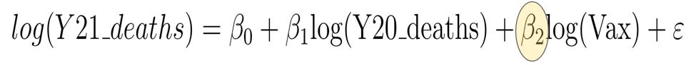 Clearly, the significant negative correlation (r=-0.34, p=0.04) cannot be attributed to vaccines because they were not introduced until 2021. Instead, the variation is attributed to state-to-state variation in mortality due to differences in chronic conditions such as lower respiratory disease, heart disease, cancer, obesity etc. which are also comorbidities that increase risk of death from COVID-19. What is the relationship between COVID vaccines and COVID deaths?To preclude Robinson’s paradox, we need to plot individual-level counts of vaccine doses vs. individual-level counts of COVID (or total) deaths in each state. We also need to adjust for each state’s population size. Without such an adjustment, vaccination doses in each state will be tightly correlated with COVID deaths by virtue of the fact that larger states will happen to have more vaccine doses and deaths than smaller ones. However, we can’t standardize by comparing percentages and proportions for the reasons stated above. Instead, we can use multiple linear regression to test if vaccine doses in one month predict COVID (or non-COVID) deaths in a subsequent month and adjust for state-to-state variation in population and mortality by including prior year (2020) deaths as an additional term.