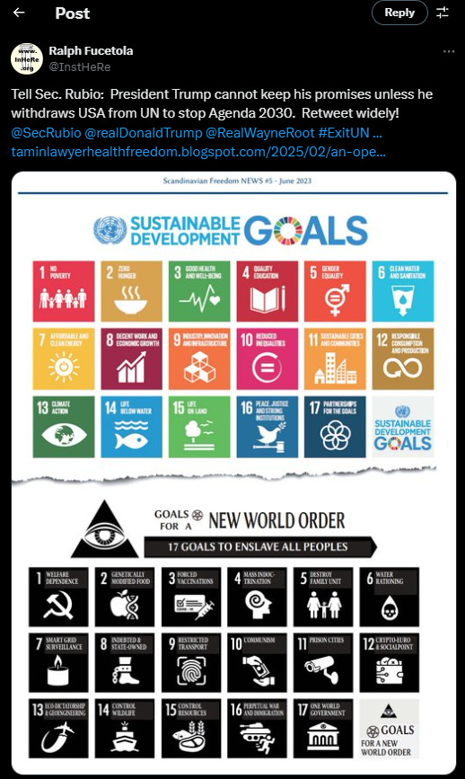 Q: What do an Ostrich, Horse, Goldfish and You Have in Common? A: They are All Being Set Up for Slaughter by One Health/UN! (Reduce CO2, Don't Cha Know!)Culling/killing 400 healthy research ostriches (along with untold millions of chickens and cows) is a tiny part of the plan: "carbon dioxide breathers, BEGONE!", per the UN. Unless we stop them.If you think the death march stops at the ostrich pen, you haven’t looked around. Read Shirley Guertin’s excellent post, below, on how the ostrich cull/kill plan is the horse cull/kill plan and the everything cull/kill plan, too. If we let the UN Death Machine win. Click on the image above and you’ll be taken to a page called “US reviews relationship with UN - Prevent Genocide 2030” where you can take direct action to tell President Trump to withdraw the US from the UN, as he has withdrawn already from the WHO and is withdrawing from UNESCO and UNHRC now. It is up to us to hold his feet to the fire of our determination to allow humanity, and humanity’s rights, to survive the UN assault. After that, alert your friends and neighbors, kennel clubs, fish tank cleaners, pet stores and farmers to the action at US reviews relationship with UN - Prevent Genocide 2030. And, while you are at it, how about retweeting Counsel Ralph Fucetola’s outstanding tweet directing Secretary Rubio and President Trump to get us out of the UN, and share it with your community for them to do the same. Here’s the link for the tweet: https://x.com/InstHeRe/status/1891599955279692104. Look, it’s all about numbers: they have the money. We have the people. And they are fighting to destroy us. We are fighting to survive. We have no choice but to win. Taking action now would be a great idea. Now.