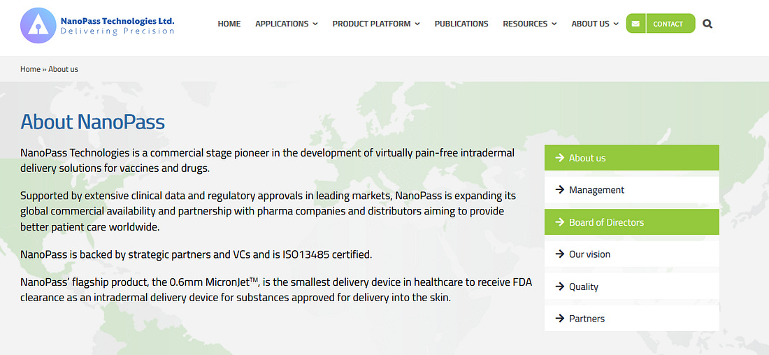 intradermal delivery space," said NanoPass CEO Daniel Levitats. "Our