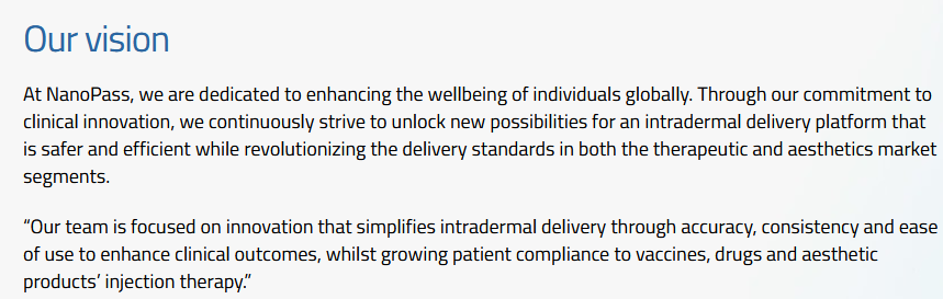including vaccines, drug treatments, and aesthetics. We foresee NanoPass