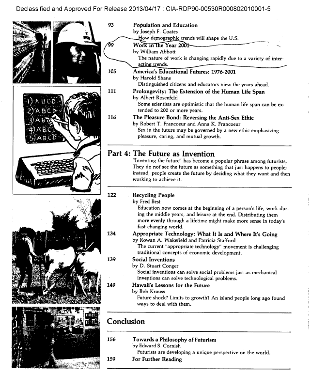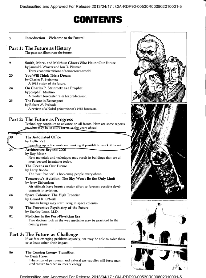 This is an interesting find in the declassified library of the CIA - why would these writings be classified in the first place? They explain how the futurists predict and create the future by dreaming it into being. As we see our world transformed by technocratic transhumanism and many people are incredulous as to the technological advancements that form the infrastructure of global 4th Industrial Revolution, it is important to understand this long term planning strategy. First, technocrats embrace Marxist ideology as we have seen in to the extreme during the Biden administration. But beyond that, the next step consists clearly of an electromagnetic control grid as seen in all the illustrations as a radiating 5G tower. Multinational corporations flourish in wealth, while the population is shown as submissive, either in mind control rehabilitation camps like in China, or via UN military paroling the streets of cities, while the population is visualized as half naked slaves who bow to the oversized larger than life techno aristocrats. Of course, depopulation is part of their picture, as outlined below - and of course diseases, hunger and war are all artificially created. Inject the population with COVID19 biological weapons of mass destruction, kill all birds and vaccinate all animals with more of the same biological weapons, spray toxic chemicals from the air and create fake conflicts and forever wars where someone son’s and daughters get killed, not to speak of the weather warfare that initiates earthquakes, deluges, droughts, volcanic eruptions at will. This is how they manifest their “dreams”.The modality of seeing the future in retrospect is a classical way of manifestation - these people know occult knowledge. Multinational corporations own the world, pollute the athmosphere, and you can see those radiation towers so needed to keep the mind control of the masses going. Technocrats love the Chinese Communist Totalitarian Regime and consider it the role model for global human enslavement. They are aware of truly demonic forces that make Orwell’s visions kindergarden play. Technocrats want to control freedoms of humanity. Note the prominent 5 G tower drawn in 1978 - now actualized by the 5 eyes intelligence network grid and the global 5 G surveillance through biosensors. This also included HAARP ELF mind control. Combine that with the brain computer interface via the COVID19 bioweapon self assembly nanotechnology and the smart dust sprayed via geoengineering and you have perfect zombification or Cyborgification of humanity, that willingly stand in line and worship the political figures as Gods. Humans are seen as slaves to the oversized Technocrats, the real rulers of the world. In 1911 the living room of of the future was conceptualized as digital entertainment of course for mind control purposes. The more stupid you get by being programmed from mindless soap operas, the real party of world dominance can continue behind the people’s back. By having a perpetual calendar of the future, the construction of that reality is continually reinforced. Why do you think the WEF has the brightest economists, scientists, engineers, physicists, doctors and they call themselves disruptors of the status quo and futurists? Because regardless of who is in power in governments they control the economic infrastructure of all countries and its future technological progress. So their agenda carries on. As Mayer Amschel Rothschild said: “Permit me to issue and control the money of a nation, and I care not who makes its laws.” In other words, money owns all the politicians, lawyers, judges anyhow, exactly as we have seen displayed in our own country for so long. Smart cities were already in planning, and only electric cars and bicycles allowed: Carbon and electrical consumption tax was already in planning and if you think Klaus Schwab’s “Build back better” was original, think again. You will “own nothing and be happy” is as old as the hills in Technocratic literature. The process of future predictions is constantly assessed, for some things occur faster, others take longer. The futurist keep track of “time” and manifestation to adjust their efforts continually. In 1978 automation of workplaces and work from home that was pushed via the COVID19 plandemic already existed. How about underwater dwellings and Ghislaine Maxwell’s and cohorts obsession with populating the Ocean floor. Original Idea? No, its a technocratic plan, decades old. How about Elon Musk’s Colonize Mars that President Trump just endorsed? Yes, technocratic plan, long in the making: Oh wait, if in1978 they were talking about more advanced technologies than space shuttles, could it be that in the secret space-programs they already had antigravity propulsion? And they are telling you, UFO’s don’t exist. Space colonies have long been actualized and they have already been to Mars, just as neuralink was not the first brain chip implanted in humanity. Elon Musk is a technocratic posterchild. I don’t know what exactly he means by him saying he is pro human while pushing for humanoid robots, automated vehicles, brain chips and more. Don’t get me wrong I think it is great what he is doing, but the technocratic plan also says we no longer need governments by the people, let the technocrats rule nations. Elon’s technocratic father, Errol Musk said: "If you are a Technocrat, are you doing all that you can to extend the Organization and discipline yourself to meet its objectives?" Precision medicine was already planned, we are a couple decades behind. Post physician healthcare means automated telemedicine plus inside the body diagnostics - we know that is done via biosensors today. Remember this was written in 1978. The list goes on. This document contains 193 pages. You can read about the planned future - but understand this, technocrats do not care about humanity. Jeffrey Epstein was a technocrat, collecting scien