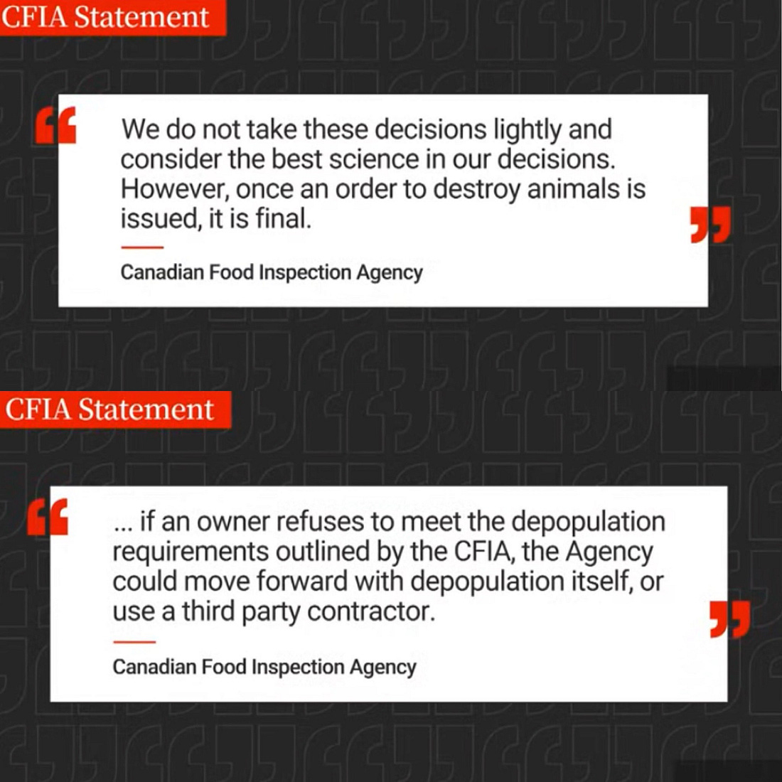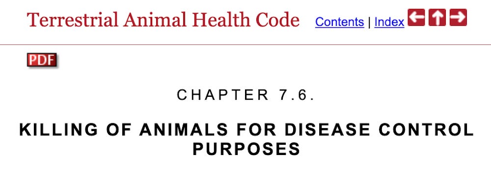 THEIR POLICY IS TO STAMP OUT LIFE. ALL OF IT.SO THAT INTERNATIONAL TRADE MAY CONTINUE.WE NEED TO MAKE WOAH CHANGE THIS “POLICY.”IMPORTANT DOCUMENTShttps://www.woah.org/fileadmin/Home/eng/Health_standards/tahc/2018/en_chapitre_aw_killing.htm http://higiene.unex.es/bibliogr/Carne/MS200389.pdf INFECTION WITH HIGH PATHOGENICITY AVIAN INFLUENZA VIRUSESInfection With High Pathogenicity Avian Influenza Viruses 354KB ∙ PDF file AVIAN INFLUENZAAvian Influenza 402KB ∙ PDF file https://www.woah.org/fileadmin/Home/eng/Health_standards/tahm/3.03.04_AI.pdf GLOSSARYWorld Organization For Animal Health Glossary 276KB ∙ PDF file https://www.woah.org/fileadmin/Home/eng/Health_standards/tahc/current/glossaire.pdf HISTORY OF THE WORLD ORGANIZATION FOR ANIMAL HEALTHhttps://www.woah.org/en/who-we-are/mission/history/ CONTACT YOUR NATION’S DELEGATE TO WOAH:CanadaDr. Mary Jane Irelandhttps://inspection.canada.ca/en/animal-health/chief-veterinary-officer-0 https://www.goc411.ca/en/356710/Mary-Jane-Ireland Mary-Jane.Ireland@inspection.gc.caPhone: 343-553-5166Fax: 613-228-6631USADr. Rosemary B. SiffordRosemary.Sifford@usda.gov301-851-3498Dr. Rosemary B. Sifford Associate Deputy Administrator Animal Care, APHI 4700 River Road, Unit 84 Riverdale, Maryland 20737 https://www.aphis.usda.gov/leadership (then scroll down the page) The representative from your nation should be listed here:https://www.woah.org/en/who-we-are/members/WOAH.org____________________________________________________________________________ Take action with the click of your mouse …click the image below: Canadians please click the links below to better understand why CFIA has taken the position it has: Click here https://inspection.canada.ca/en/about-cfia/transparency/corporate-management-reporting/environment-and-sustainable-development/dsds-2023-2027 The most important thing we can do today is1. take the above action2. pick up your phone and call the numbers above3. visit Dr. Rima substack and share share share, Click here drrimatruthreports.substack.com4. Share Share Share and as James Roguski says use any part of anything I share to get the word out. visit James’ substack for the full article: JamesRoguski.substack.com