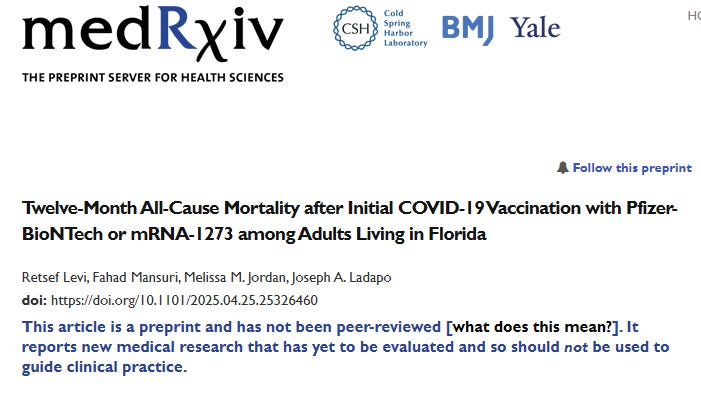 Every honest doctor in the world should be calling for the Pfizer shots to be immediately haltedThe critics have been unable to attack the Levi paper showing a 36% ACM increased caused by the Pfizer shots. That's a train wreck. Vaccines are NEVER supposed to increase ACM even by a little.Executive summaryI’ve written about the Levi/Ladapo paper earlier, New Florida brand differential study shows the Pfizer vaccine likely KILLED over 470,000 Americans. What’s different today is that nobody has been able to find any holes in the study results, including Pfizer. Pfizer’s vaccine raises your risk of death by 36%. That’s huge. That’s more than heart disease. It’s like double your risk of cancer. Nobody should be taking the Pfizer shots. They should be banned for all ages everywhere in the world based on this study. What will happen of course is nobody in the medical community will say a word and health regulators worldwide will continue on like nothing has happened saying “it hasn’t been peer-reviewed.” That’s bullshit. It’s not like they don’t have scientists they can give it to for review. Here’s ChatGPT’s unbiased analysis of the Levi/Ladapo paperMy prompt: