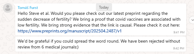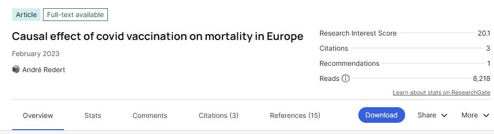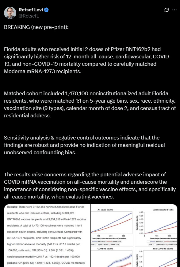 Five recent papers show vaccine COVID vaccine harms outweigh any benefitsDon't worry. The FDA, CDC, and Congress are never going to apologize for their mistake. One of these papers has already been rejected by 6 journals without even reading the paper!Executive summaryHere are four recent papers that everyone should know about and one of my favorite older papers I haven’t written about. All show vaccine harms outweigh benefits. I sound like a broken record, don’t I? I’m here to document just how obvious this is to anyone who looks at the data. Levi paper: Pfizer increases your ACM by > 36%This study, on its own, can be used to show that the COVID vaccine killed people if you know the big trick. Here’s the big trick: COVID vaccines don’t reduce non-COVID all cause mortality. If the NCACM of the vaccines are not the same, it’s certain that at least one vaccine is killing people. Details on how Pfizer killed 470,000 Americans can be found here. After I countered all the silly objections, even Grok was forced to admit that this paper should cause health authorities to revoke the Pfizer vaccine (at a minimum). Maniche paper: Women who got the shot were 30-50% less likely to give birthThis study, Rates of Successful Conceptions According to COVID-19 Vaccination Status: Data from the Czech Republic, was done by researchers I know. They looked at the Czech data and the result is stunning: The paper has been rejected by 6 journals so far. Check this out: The reason for the rejection is that readers of the journal don’t want to read articles showing they got it wrong. Meanwhile, the CDC will continue to recommend pregnant women get the shot. Okoro paper: More vaccines, more deathThe paper, “Paradoxical increase in global COVID-19 deaths with vaccination coverage: World Health Organization estimates (2020–2023)” shows a high correlation (.5 and highly statistically significant) between vaccination and death. The paper says this is a paradox because everyone knows the vaccines saved lives, right???? <sarcasm off> Mostert: Excess mortality continued to climb even after the vaccines rolled out. It’s almost “as if” they didn’t workThe Mosert study, Excess mortality across countries in the Western World since the COVID-19 pandemic: ‘Our World in Data’ estimates of January 2020 to December 2022, had this graph. Doesn’t look like the vaccines worked, does it? Redert: EU (30 countries 550M people) shows vDFR>IFRRedert in Causal effect of covid vaccination on mortality in Europe showed a vaccine dose fatality rate of 0.35% (95% CI: 0.15%-0.55%) in Europe which is greater than the infection fatality rate (IFR) of .1% for COVID. This was an extremely well done study, one of the best studies on vaccine mortality during the entire pandemic. The result means even if the vaccines were perfect, they were a nonsensical intervention because they killed > saved. But it’s even worse than that. Even if they were perfect, they should never have been approved in the first place because you are not allowed to give a vaccine that increases ACM. That’s a violation of “do no harm.” This paper is pretty much impossible to attack. He was limited only by the data available and did the best assessment given the limitation. Health authorities should take notice. Instead, they ignore it because the CDC says it’s safe. SummaryThe harms are obvious. The medical community is silent about all of these papers. They want to keep on believing the vaccines are safe. At what point does this stop? When are health authorities going to speak out? You're currently a free subscriber to Steve Kirsch's newsletter. For the full experience, upgrade your subscription. |