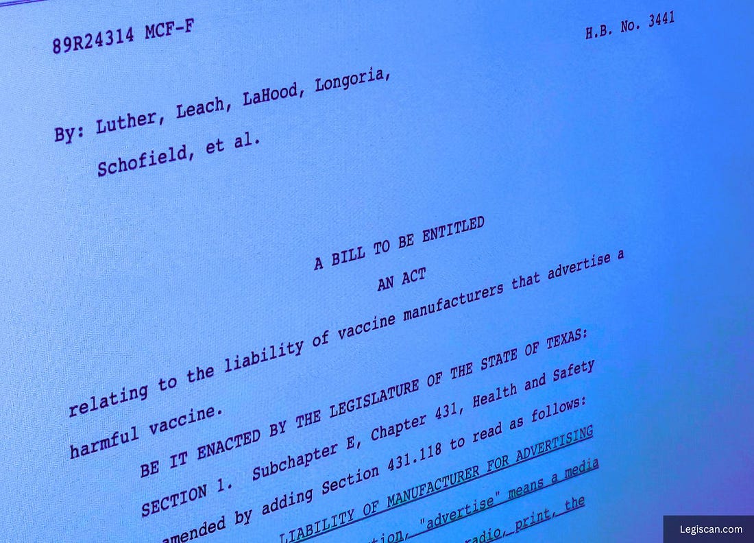 Why This MattersFor decades, vaccine manufacturers have enjoyed near-total immunity from liability thanks to federal protections under the National Childhood Vaccine Injury Act of 1986 and the PREP Act. But HB 3441 cuts through that shield—not by targeting the product itself, but by going after the promotional lies used to sell it. Cleverly, the bill’s authors appear to be leveraging the advertising hook as a legal workaround to federal immunity, holding companies accountable for the claims they make, not merely the product they produce. This represents a massive legal shift. If HB 3441 becomes law, Texas could become the first state in the nation to strip vaccine manufacturers of their immunity—at least when it comes to deceptive advertising that leads to harm. What’s NextThe bill is now classified as “engrossed,” meaning it’s cleared the House and is headed to the Texas Senate for consideration. If it passes the Senate and is signed by the governor, it will go into effect on September 1, 2025. Bottom LineThe message from Texas lawmakers is clear: If you lied in your ad and your shot injured someone—get ready to pay up. Follow Jon Fleetwood: Instagram @realjonfleetwood / Twitter @JonMFleetwood