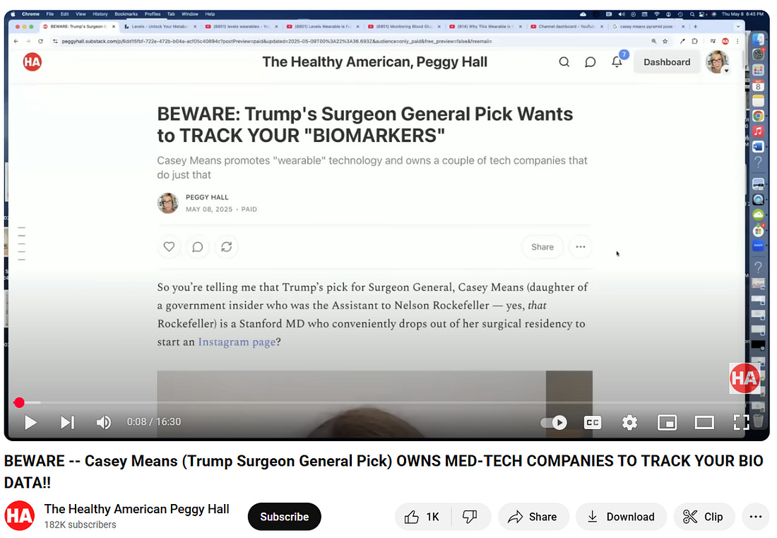 Unlicensed Surgeon General Nominee Casey Means Wants to Track Your Bio Markers All the Time. So Does Her Friend, Bobby. She's Riding a Trojan Horse into DC. What Could Possibly Go Wrong?Peggy Hall (The Healthy American) hits it out of the ballpark with this critically important video. Call the Senate to block her nomination.¹ Peggy Hall is sounding the alarm about Trump’s second nominee for US Surgeon General. Casey Means, MD (unlicensed - keep reading) is riding into Washington DC on an engineered Trojan Horse built of media hype and globalist positioning. Now, it must be said that President Trump’s vetting process for candidates to fill this post is woefully poor. His first, nominee, gushingly enthusiastic mRNA “vaccine” and Operation Warp Speed promoter, the devout Dr. Janette Nesheiwat, who is a member of a favored family (her sister served as Trump’s Homeland Security Advisor during his first term and is married to Mike Waltz, the once and former National Security Adviser), famously maintained in a 2021 Fox News opinion piece, "I'm optimistic we are on our way to ending the needless loss of lives starting with the nothing short of miraculous coronavirus vaccine and the development of therapeutics. We have many vaccines in existence that treat a variety of non-life-threatening diseases but to have a COVID vaccine, i.e. a Pfizer or Moderna mRNA that will actually save you from dying is a gift from God." [Emphasis added - REL] Paying no attention whatsoever to science or logic, she praised social distancing, mask wearing (including masking children) and thanked Face Book for censoring covid “vaccine” questions, praying that other social media sites would do the same. She also lied shamelessly about her credentialsDespite actually being Board Certified in Family Medicine and a director of an urgent care company (CityMD), Dr. Nesheiwat [criminally?] misrepresented her academic and military history [!] by claiminig that her medical degree was from the University of Arkansas for Medical Sciences when she actually graduated from the [accredited, but far less prestigious] American University of the Carribean. She falsely claimed Board Certification in Emergency Medicine and lied about being commissioned as an Army officer. President Trump’s vetting process is more than a little weak. And the same lack of care in providing the American public with qualified, let alone suitable, candidates which was so evident in the sycophantic Dr. Nesheiwat’s absurd nomination for Surgeon General, a major post in the US “Health” “Care” system, is even more evident in the deeply worrisome nomination of Casey Means for the post of Surgeon General (SG) of the United States. What does the SG do, and with whom does s/he do it? Most of us don’t really focus very much on that office, but it turns out to be an important one since the SG is the Commanding General of the United States Public Health Service Commissioned Corps, which is woven into a vast number of government functions: ² The U.S. SG serves as the leading government spokesperson on matters of public health. S/He speaks for the government on public health issues. USPHSCC’s mission is to protect, promote, and advance the health and safety of the nation, providing Americans with the best scientific information available on how to improve health and reduce risk of illness and injury. USPHSCC is an armed service directly under the Department of Health and Human Services. The information of how many of its 6000 members carry weapons is not available to the public. It is, in essence, a separate and private army answerable to the Secretary of Health and Human Services, whose emergency powers are, in many ways, much more significant than that of the President. Its commissioned officers are eligible for the same benefits as active-duty military personnel subject to the Uniform Code of Military Justice. Trump’s second candidate for the position of Surgeon General is even less qualified than the first. Dr. Nesheiwat is at least a [singly, not doubly] Board Certified licensed physician, although she is unable or unwilling to exert scientific and clinical discernment in a political context and is both a liar and a sycophant. Casey Means is far more frightening and far less qualified to fill the post than the prior nominee, which is saying quite a lot. Dr. Naomi Wolf, herself a Tech CEO, raises deep and highly significant questions about Casey Means Dr Wolf says, “I said — and I stand by every word — that it looks to me as if both Casey Means and Calley Means have been sent to us by scarier interests than the CIA. Silicon Valley is scarier than any government agency, and far more powerful. The Means siblings, I maintain, are representing Silicon Valley’s interests, and not ours. I said — and again, I stand by every word — that they both appear to be tasked with representing Big Tech’s interests in the rush to exploit the gold mine that is the pristine, valuable data — especially our private medical data - that is currently held behind secure doors by the United States Government.” and makes the case, eloquently and, to my mind, compellingly, that Casey Means is a plant, a created, inauthentic and bogus “authority” and “entrepreneur” who is riding a Trojan Horse to bring us endless biometric surveillance and bring her masters and benefactors the limitless profitability of our personal and medical data - forever. Dr. Wolf points out that the funding patterns and amounts, which are enormous, make as little sense as Dr. Means’ clinical, medical and academic history, questioning why hundreds of millions of dollars suddenly and inexplicably became available for a company with no track record, product history or managerial experience. She surmises lack of merit and creativity do not account for this investment, but another agenda, which is not in the service of either the public or health freedom, accounts for the 