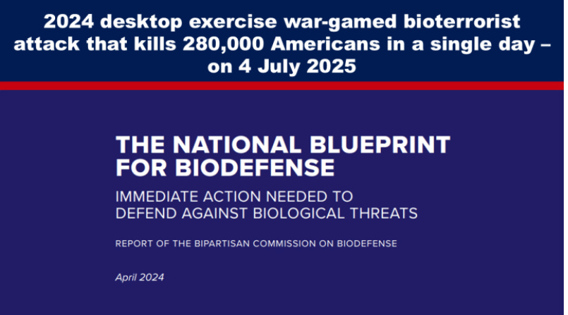 2024 desktop exercise war-gamed bioterrorist attack that kills 280,000 Americans in a single day – on 4 July 2025