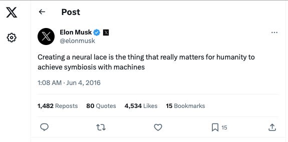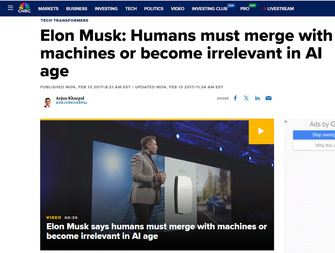 How Do Human Beings Survive "The Singularity”On stages and in interviews, Musk has repeatedly asserted that “Humans must merge with machines or become irrelevant in the Ai age.” IMPORTANT Note: A human being merged with Ai is no longer a human being. It’s a manufactured evolution of a new version of our species.Musk’s Neuralink is a brain-to-computer interface (BCI) technology that connects electrodes implanted in the brain to a computer. While Neuralink is an ‘advancement’ from the original BCI technology that sat on top of the brain, Musk’s end game is for humans to have an injectable Ai neural network that is an additional layer within the brain “to achieve symbiosis with machines.” Creating a neural lace is the thing that really matters for humanity to achieve symbiosis with machines.” - Elon Musk, Tweet, June 4, 2016 While many movie critics opine who the character of Dr. Will Caster is based on, Peter Thiel, Ray Kurzweil, Peter Diamandis, Elon Musk, Bill Gates, and other transhumanism leaders, but make no mistake, when Dr. Will Caster realizes he is dying, his goal is upload himself to a supercomputer and be able to input data into human beings and download himself in the future. Check out this 30-second clip of Elon Musk from AXIOS on HBO, 2018. Musk Makes a Cameo Appearance in TranscendenceIn case you were still wondering if Dr. Will Caster’s character was based on Elon Musk, check out who the camera spans to in the audience during a lecture on a self-aware Ai and just before Will Caster (Elon Musk) comes on stage. You can watch Transcendence for FREE on YouTube (with ads). Elon Musk is at the Helm of Merging Man with AiNotice that the camera is focused on Elon exactly when the speaker states, “My priority is to use my colleagues accidental insights…” It’s no coincidence that the speaker stated that these neural technologies would be used for the early detection of cancer, and that on January 21, 2025, Larry Ellison spoke at the White House about Ai mRNA ‘vaccines.’ Ai Nanotechnology Is in ‘the Vaccines’Musk’s company, Tesla, is also an investment partner with the mRNA biotech company CureVac, which is also funded by the Bill & Melinda Gates Foundation and CEPI. Germany-based ‘vaccine’ manufacturer CureVac, describes the use of their mRNA nanoparticles as;