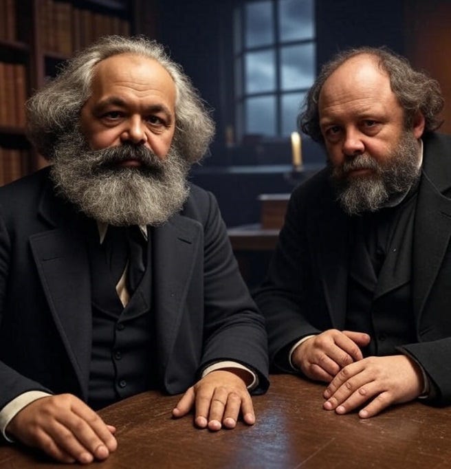 Image by Grok: Karl Marx and Mikhail Bakunin