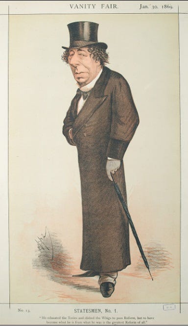 Image: Disraeli, the first person caricatured in the London magazine Vanity Fair, 30 January 1869.