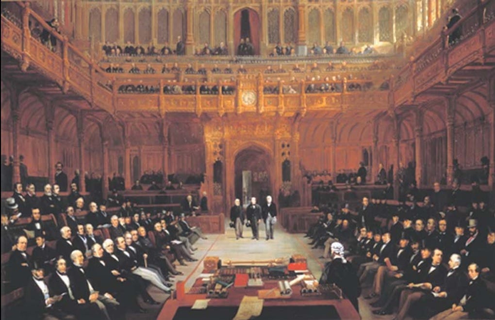 Image: Lionel Nathan de Rothschild introduced in the House of Commons on 26 July 1858 by Lord John Russell and Mr John Abel Smith, by Henry Barraud, 1872.