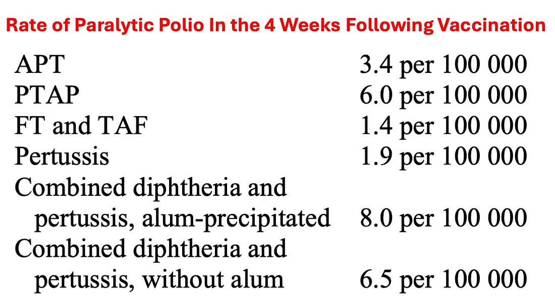 As these injuries were often underreported, their incidence widely varied between studies: MeaslesA 1966 case occurred in a 14-month-old who developed encephalitis 11 days after vaccination, first showing facial twitching, then fever, stopped eating, and became semi-conscious. By day 15, the child had weakness on the left side and frequent severe seizures. After four months, the child still had left-sided weakness and possible mental impairment. Vaccine Caused “Polio”Multiple papers from 1950-1956 found vaccination significantly increased polio risk. These included a 1950 paper (82 cases), another 1950 paper (14 cases), a 1952 paper (53 cases), and a 1956 report (355 cases). A 1950 statistical analysis by the epidemiologist who created standards for establishing causality found vaccination links. A 1952 paper found vaccination doubled polio risk. In 1956, a committee concluded 13% of paralysis in young children were causally related to vaccines: DiphtheriaMost reported diphtheria vaccine injuries came from hot vaccine lots:
