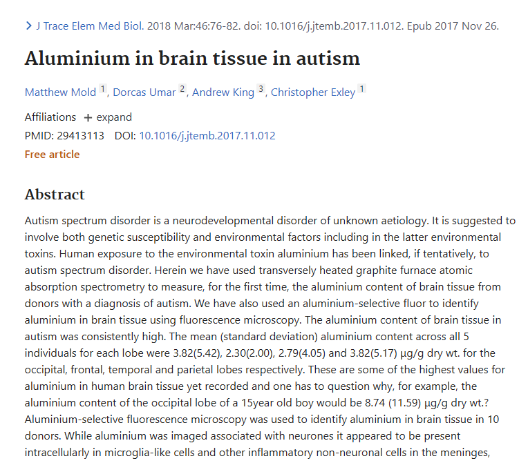 So saying “Denmark found no link” while ignoring that the U.S. child receives two to three times the aluminum load amid a far more toxic background is scientifically meaningless. What do the brains of autistic kids reveal in an autopsy? Extraordinary high levels of aluminumSee this classic Chris Exley paper on what happened when they examined the brains of five kids with autism? The highest concentration of aluminum ever recorded in human history. SummaryAccording to the study, injecting kids with aluminum will reduce their risk of autism and asthma; it was statistically significant. Nobody believes that. There is no biological plausibility for that. And nobody should believe this study claiming that injecting aluminum is safe. Invite your friends and earn rewardsIf you enjoy Steve Kirsch's newsletter, share it with your friends and earn rewards when they subscribe. |