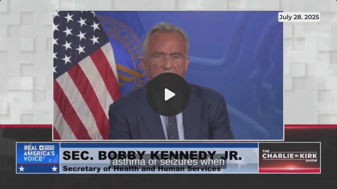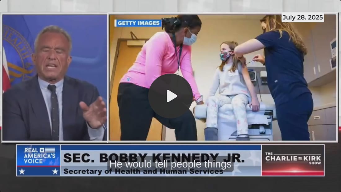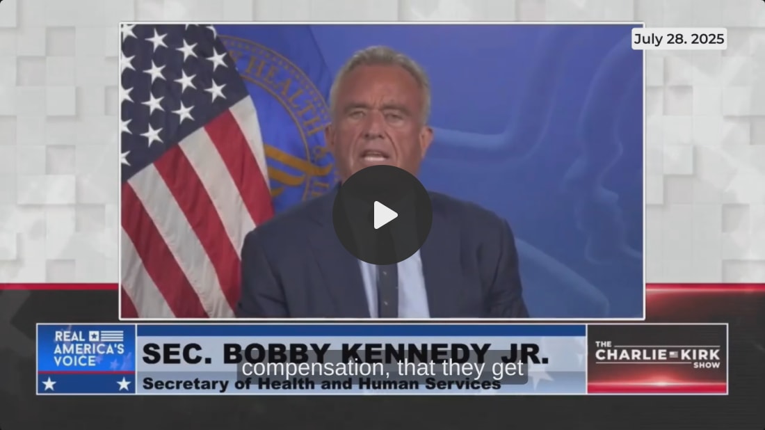 RFK Jr. Promises Compassion and Quick Compensation for the Vaccine-Injured“...this very, very cruel, heartless system that is designed to deny vaccine injury and to deny compensation to people who badly need it. And we’re about to fix all that.” - RFK Jr.July 29, 2025: In a frank and transparent 12-minute interview with Charlie Kirk on X, Secretary Kennedy (RFK Jr.) provided detailed information to the American people about the problems with the National Vaccine Injury Compensation Program (VICP) and vaccine laws in general. RFK Jr. emphasize that it is nearly impossible for the vaccine injured to get compensated. In explaining how vaccine court works, RFK Jr. states: