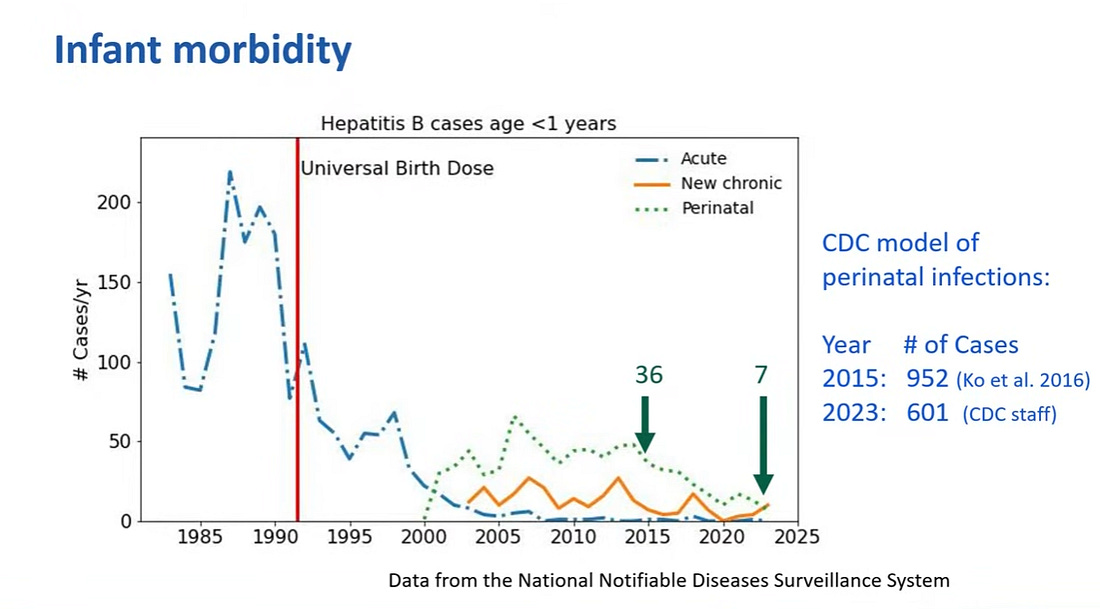 Perinatal cases were down to 36 in 2015 and 7 in 2023 even though CDC modelling studies predicted many more cases.