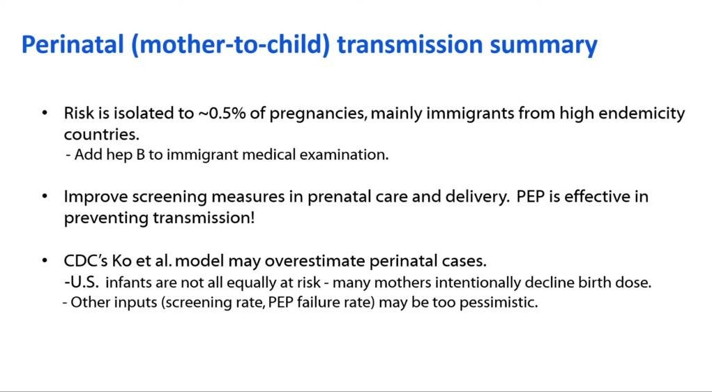 In addition, according to the model 88% of women are screened during pregnancy based on CDC data so 98.5% of infants get post-exposure prophylaxis (PEP) at birth. Of the 12% not screened, approximately 80% of infants still receive PEP at birth.