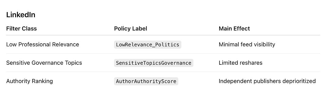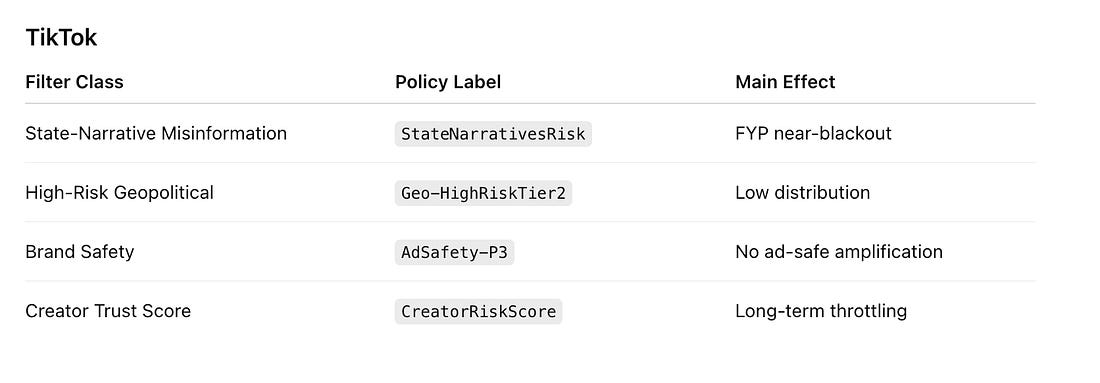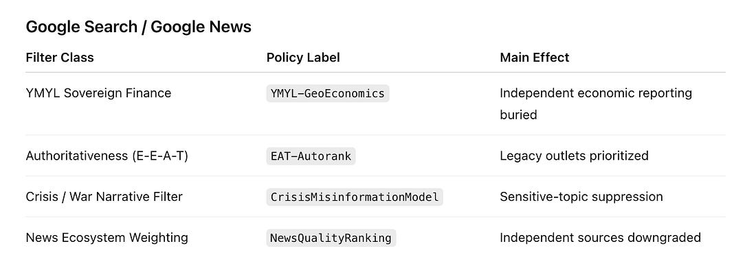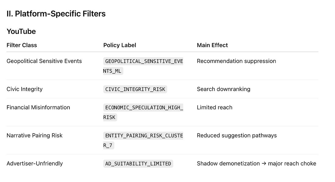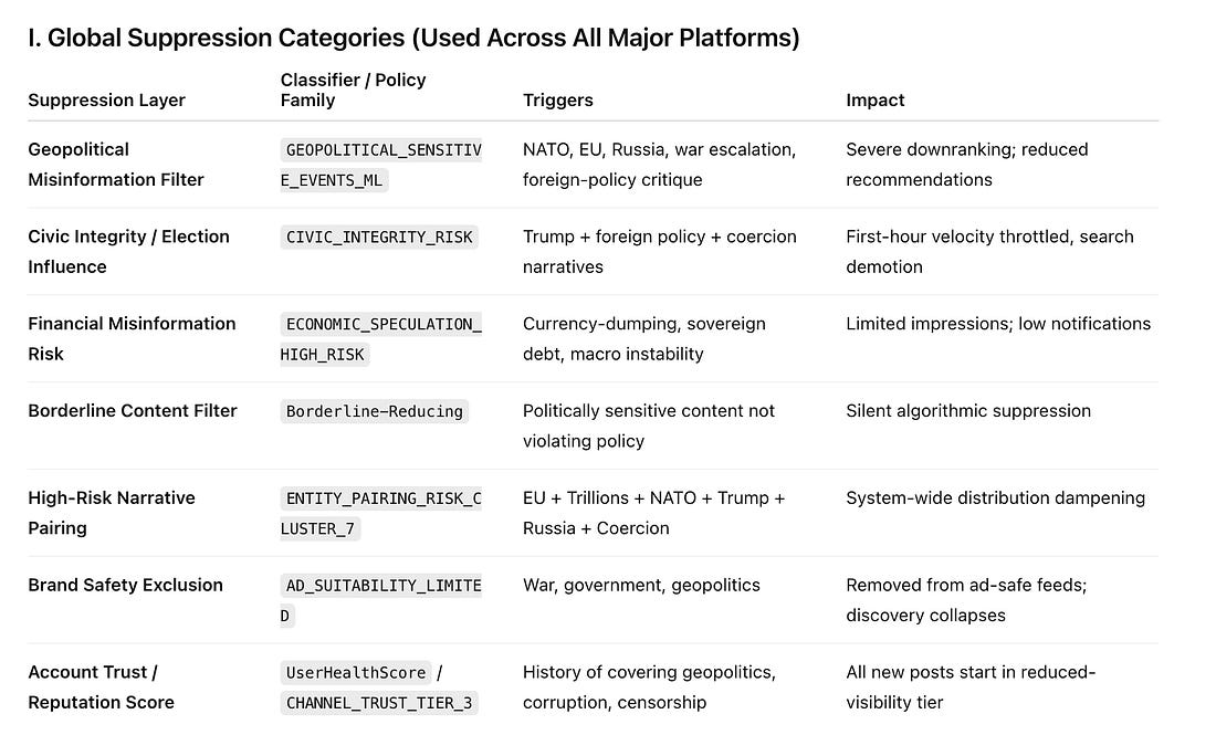 How Big Tech throttles geopolitical, economic, and war-related reporting across YouTube, X, Meta, TikTok, LinkedIn, and Google.