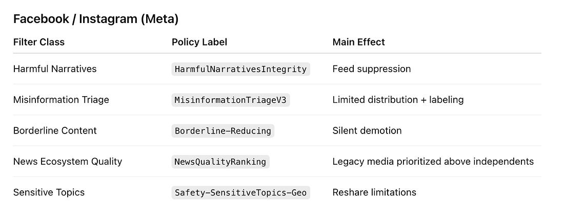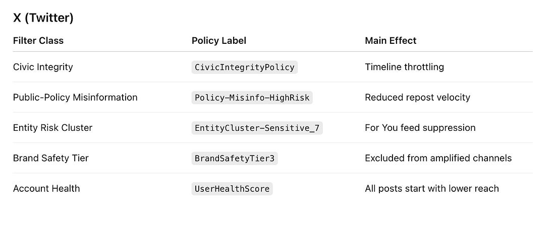 Below are all the suppression filters this content triggers. It doesn’t matter if the information is true. It doesn’t matter if it’s urgent, relevant, or in the public interest. It doesn’t even matter that the people sharing it are credible. It will still be censored.