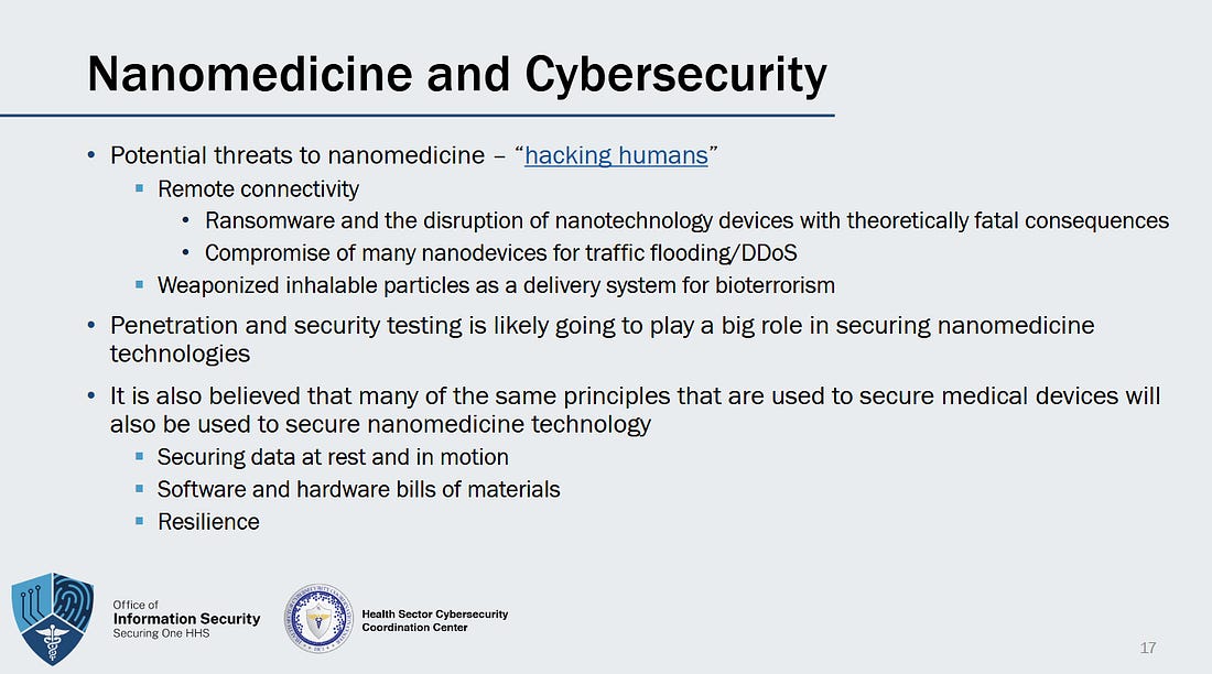 HHS Office of Information Security Presentation Shows Full Awareness that Nanomedicine Can Hack Humans With Fatal Outcomes. COVID 19 Shots Are Nanomedicine According National Nanotechnology Initiative