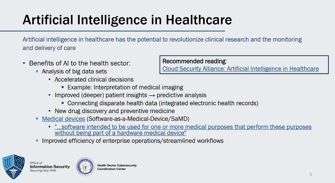 The 4th Industrial Technocratic Revolution is moving into the healthcare sector like a storm - but not without risks that the HHS is fully aware of. I think the risks are significantly underestimated, in particular as to rogue AI effects on nanomedicine and microrobotics - but the fact that humans can be hacked is fully acknowledged. How would any health care provider be able to control AI rogue elements - when it has been shown that an AI that is programmed to find new medicines, can find 40000 new biological weapons in 6 hours?