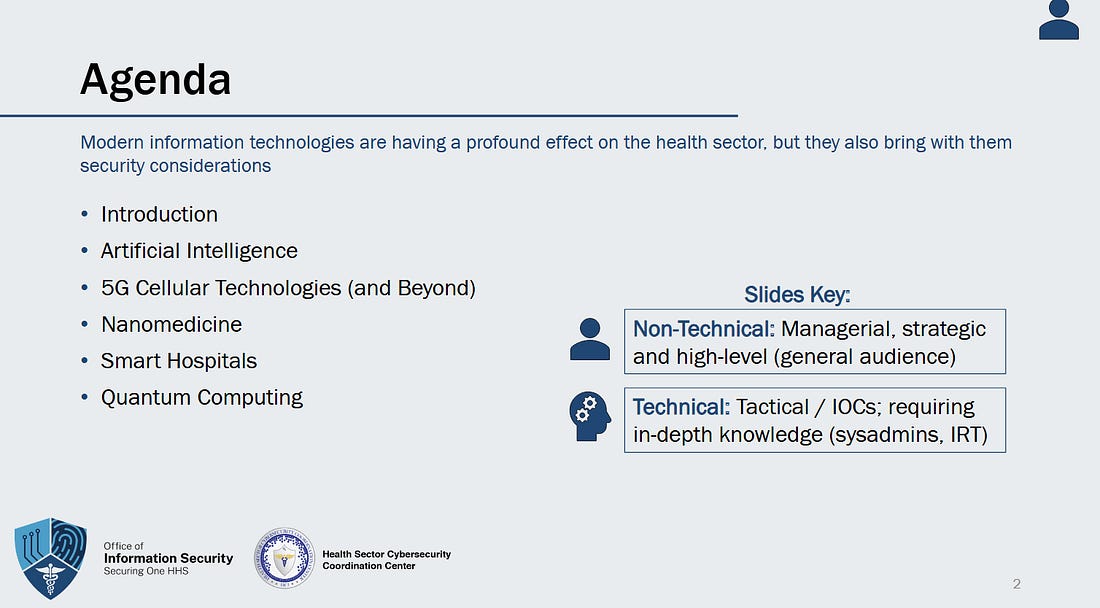 This is a presentation of the Office of Information Security Health and Human Services in conjunction with the Health Sector Cybersecurity Coordination Center H3C.