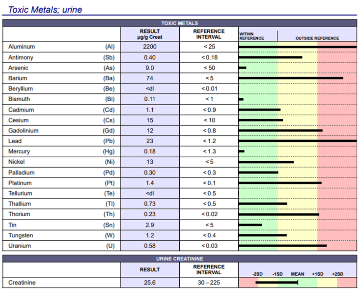 Provoked Urine metals test 1500mg EDTA shows enormous metal contamination in one of my patients.
