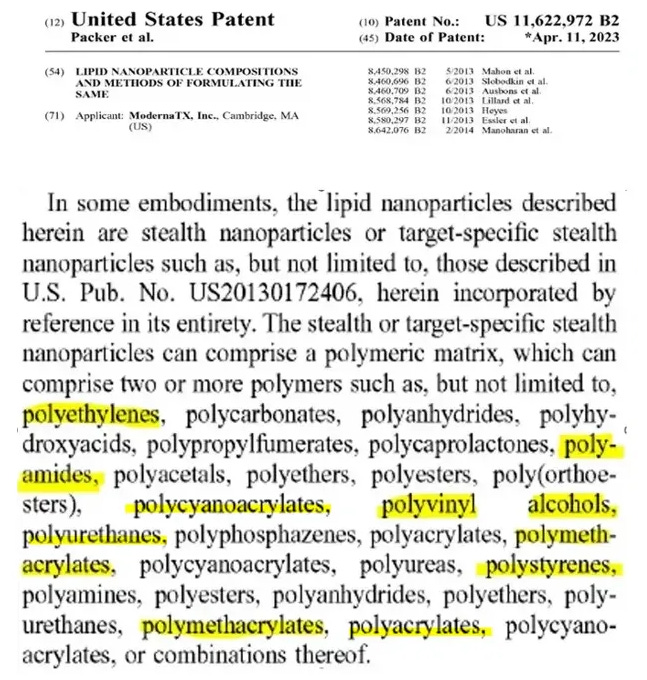 Moderna patent admits that Stealth plastic nanoparticles are within the