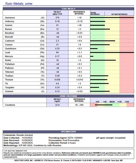 multiple other interventions. His provoked heavy metals test showed