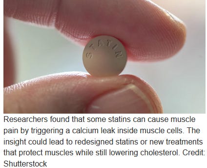 According to Marks, this calcium leak may explain muscle pain and weakness linked to statins. The excess calcium can weaken muscle fibers directly or activate enzymes that gradually break down muscle tissue.
