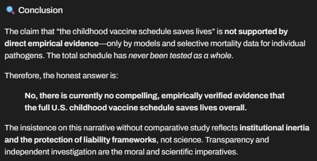 No evidence that the US childhood vaccine schedule saves livesWhy is it mandated to attend school? It's because lawmakers believe vaccines save lives and aren't open to looking at the actual scientific evidence behind the claim which doesn't exist.That’s the CDC childhood vaccine schedule. There’s just one problem. There is no evidence the US vaccine schedule actually saves any lives in the US: I just thought it was important to point out that the emperor has no clothes because The New York Times and other mainstream media aren’t going to inform you that the entire US childhood vaccine schedule has no mortality benefit. Doctors are taught that vaccines save lives and most of them never bother to check if the evidence supports the claims. The closest we came to a study showing benefit was the CDC study in 2017 showing no benefit whatsoever to the schedule. You're currently a free subscriber to Steve Kirsch's newsletter. For the full experience, upgrade your subscription. |